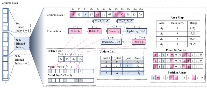 简介:近年来,Binned Scan Index的技术显示出其在加速主存分析型数据库中的扫描操作方面具有显著潜力。该能力源于草稿-精修范式(Draft-Refine paradigm),一种两阶段方法:首先生成近似的草稿结果,随后利用索引中存储的辅助数据对其进行精修。尽管现有设计已能实现较优的扫描性能,但仍受两大效率问题困扰:(1)精修阶段开销:尽管现有技术通过提高草稿的准确性来减少精修迭代次数,但每次精修操作仍会产生显著的随机内存访问开销;(2)动态数据效率低下:当考虑多版本并发控制(MVCC)时,扫描操作需要为当前事务确定记录的可见版本。可见性检查的开销远大于谓词判断的成本。因此,在MVCC场景下利用Binned Scan Index进行扫描,对总执行时间的改善甚微。